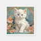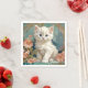 Napkins mit einer weißen Katze im Stil von Alphonse Mucha! Diese blaue mit Augen, flauschige Pose mit rosa Blume und blauen Decken. Ein fabelhaftes Geschenk für Katzenliebhaber und Jugendstil-Sammler!