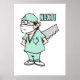 Ein Cartoon, der von einem Chirurgen zeichnete, der eine große Hand hielt, sah hinter seinem Rücken und schrie "NEXT!".