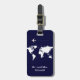 Ein blau (benutzerdefinierte Farbe) personalisierbares Element mit einem Flugzeug-Bild, der Weltkarte und dem benutzerdefinierten Namen des Paares