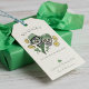 Dieses künstlerische "So glücklich, Sie in unserem Leben zu haben" Sugar Skulls Geschenkmarke zeigt handgezeichnet Illustrationen von irischen Zuckerschädeln, Goldmünzen und Nylons auf der Vorderseite, und ein lustiges grünes Muster mit denselben Elementen auf der Rückseite. Personalisieren Sie Ihre eigene Nachricht und Ihren eigenen Namen.