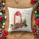 Hier ist ein hübsches Holiday werfen Kissen, die ein Familienliebhaber für die nächsten Jahre sein wird. Die Vorderseite und die Rückseite haben ein nostalgisches Bild einer beleuchteten roten Laterne, die inmitten einer Piniendusche und Kiefernkegel liegt. Hinter dem Bild ist ein subtiler Wirbel von winzigen Goldkonfetti. Auf jeder Seite befinden sich separate, benutzerdefinierte Textfelder, die rechts grün und rot zueinander passen. Alles wird auf einem schneeweißen Hintergrund platziert. Sehr elegant!