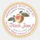 Rundetikett mit Vintager Pfirsichabbildungen. Ideal für Bauernmärkte oder lokale Geschäfte, wo die Kunden handgefertigte, hausgemachte Marmeladen und Gelees suchen.