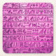 Ein Set quadratischer Untersetzer alter Hieroglyphen, die lila auf Stein graviert sind. Ideal für Archäologie, ägyptische Themen und Kostüme-Party.