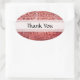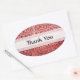 Ein Set roter ovaler "Danke" Aufkleber mit antiken Hieroglyphen, die auf Stein graviert sind. Die Worte "Danke" sind anpassbar!