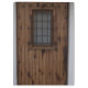 Alte klobige, braune Eiche mittelalterliche spanische Türe mit einem zentralen Fenster mit schwarzen schmiedeeisernen Gittern bedeckt.