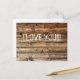 Postkarte mit einer großen, reichen Struktur aus Eichenholz mit dem Text: "Ich Liebe dich!!!" darauf weiß gestrichen.