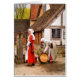 Two Tudor ladies washing water tubs at the water pump. England UK.