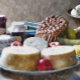 Bauernkost aus den 1800er Jahren, Käse, Äpfel, Krähen, Konserven und Erntebrot. Wasserfarbe England UK.