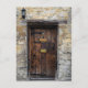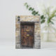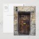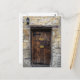 Postkarte einer alten Holzfront in einer Steinfassade eines Hauses mit Licht über dem Eingang.