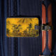 Machen Sie Ihr Gepäck auf einem Flughafenkarussell mit einzigartigen Tags auffallend! Dieses edle Gepäckstück vermittelt einen Eindruck einer alten orientalischen Landschaft. Zwei kleine Figuren laufen durch Bäume zu einer Pagode im Vordergrund. In der Ferne lauern die Berge. Die Herbstfarben sind Gold, Gelb, Orange, Grün, Braun und Schwarz. Auf der Rückseite sind Ihre persönlichen Daten. Alle Texte können individuell angepasst werden. Machen Sie Ihr Gepäck auf einem Flughafenkarussell mit einzigartigen Tags auffallend!