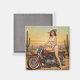 Alte Schule Retro Button-up Mädchen auf Motorrad Magnet