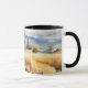 Wunderbare Tasse für alle, die alte LKWs und Land leben, diese Tasse hat große Spätsommer-Gräser auf einem Feld, wo ein alter roter Lieferwagen-LKW mit einer roten Scheune und Hügel im Hintergrund geparkt ist, alles in einer Herbstumgebung.