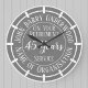 Ruhestand-Banner mit bedienten Jahren. Zeigt den Namen des Ruhestands, des Unternehmens oder der Organisation und die Dauer des Dienstes. Silber und Weiß auf grauem Hintergrund.