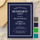 Classic Rente Party Einladend mit individualisierbarem Text Celebrate im Stil mit dieser wunderschön gestalteten Ruhestand Party Einladung. Der dunkelblaue Hintergrund und die weiße Grenze sorgen für ein gepflegtes, berufliches Ambiente, während die Mischung aus Serifen und serifenlosen Schriftart eine Touch moderner Eleganz verleiht. Die Rückseite spiegelt das elegante Design wider, mit der herzlichen Botschaft: "Wir hoffen, Sie zu sehen!" und Platz für weitere Details. Perfekt für Firmenmitarbeiter oder Familienorganisatoren, alle Texte können einfach bearbeitet werden, um Ihre spezifische Veranstaltung Anzug zu geben. Lassen Sie Ihren Rentner mit dieser zeitlosen Einladung schätzen.