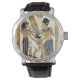 Uhr, Vintage Männeruhr mit schwarzem Lederarmband