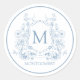 Verleihen Sie Ihrer Korrespondenz und Ihren Geschenken mit diesem eleganten Vintage-Blumenmonogramm-Aufkleber in Blautönen eine zeitlose, anspruchsvolle Note. Dieses klassische Emblem wurde mit raffinierter Kunstfertigkeit entworfen und zeigt ein ornamentales Schildmonogramm, das von zarten, handgezeichneten Blumen in sanftem Puderblau umrahmt wird. Unter dem Wappen wird Ihr Familienname elegant dargestellt, wodurch eine anmutige Balance zwischen Erbe und Stil entsteht. Diese personalisierten Aufkleber sind perfekt zum Verschließen von Umschlägen, zur Dekoration von Hochzeitsgeschenken, zur Beschriftung von Geschenken oder zur Aufwertung von Schreibwaren und verleihen jedem Detail eine Atmosphäre von Luxus und altmodischem Charme.