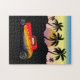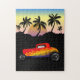 Altes Hot Rod Auto mit Sonnenuntergang und Palmen als Landschaft