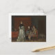 Postkarte mit dem Gemälde "Drei Figuren, die in einem Inneren konvertieren, bekannt als "Die Bewunderung der Vaterschaft" des berühmten niederländischen Malers Gerard ter Borch.