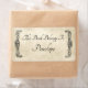 Dieses einzigartige Vintage Design verfügt über einen extravaganten Bildlaufrahmen von einer antiken Buchseite und den Text Dieses Buch gehört mit einem Beispielnamen, der Ihnen den Platz zum Hinzufügen Ihres eigenen Namens bietet, alles auf einem verblassten und alterten Pergament-Look Hintergrund.