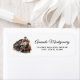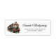 Adressetiketten mit einer Illustration eines alten Vintagen Dampfzuges. Die Einrichtung ist mit den Weihnachtsliedern in Rot dekoriert.