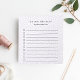 Das personalisiert zu bedienende Notizblock verfügt über einen leopardenfarbenen Hintergrund in gedämpfter Pastellglanz, lila und weiß. Personalisieren Sie sich mit einem Namen und einer zusätzlichen Textzeile (mit "Wichtigen Dingen zu tun" gezeigt) in der modernen schwarzen Schrift. Dieses Notizblock mit einer ausgekleideten Checkliste in einem subtilen lavender animal print Muster macht es einfach, die wichtigen Aufgaben im Stil behalten.