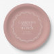 Dieses elegante Design ist ideal für Brautpartys im Frühling oder im Sommer geeignet und besticht durch eine gewölbte Jakobsgrenze auf einem staubigen Hintergrund der Rose. Personalisieren Sie diese Brautparty-Teller mit Ihrem Veranstaltungsnamen, Datum und Jahr.