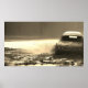 Dieses Poster hat ein Auto, das im Schlamm auf sich rennt.