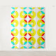 Kreise innerhalb von Kreisen, Kreisen der Schönheit Ringe drehen sich innerhalb von Ringen über lebendige gelbe, aqua und rote Kreise auf weißem Hintergrund.