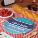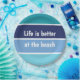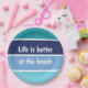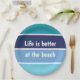Ein blaues, horizontal gestreiftes Muster und der Text: Das Leben ist besser am Strand Klicken, um einen Namen oder ein lustiges Wort hinzuzufügen