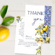 Amalfi Positano Vietri blau Majolica Fliesen Zitronen Brautparty Dankeschön Karten, mediterran themed blau und gelb Fliesen mit einem Haufen Zitronen und Blüten in blauen Keramiken Vase Brautparty danke Ihnen Karten