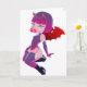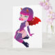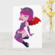 Niedliches kleines Mädchen mit bösen Hörnern und Flügeln in rosa und lila Kostüme zu Halloween