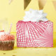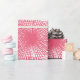 Dieses Verpackungspapier hat ein modernes Design von Sternexplosionen in Amarant-Tönen.