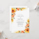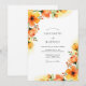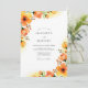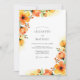 This design features vibrant watercolor florals in shades of amber, orange, and soft peach. The artistic petals and budding stems, reminiscent of poppies and ranunculus, evoke the feeling of a bright morning. Lush foliage and delicate greenery provide a fresh accent against the crisp white background, creating a romantic and airy aesthetic for a seasonal ceremony.