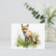 Senden Sie eine Touch des Wilden mit der Postkarte Amber Gaze: Meadow Fox. Dieses Design mit einem Aquarellfuchs, der unter weichen Gräsern stehend ist, verbindet die Schönheit der Natur mit künstlerischer Eleganz. Ideal für Notizen, Grüße oder als Kunstwerk, bringt es den Charme der Wiese in jede Botschaft.