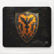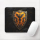 Ein leistungsstarkes Mauspad mit einem aufsteigenden Phönix-Emblem in leuchtendem Bernstein und geschmolzenem Gold. Auf einem dunklen vulkanischen Rahmen mit komplizierten lichtbrechenden Details und einem schwarzen Hintergrund mit texturierten goldenen Adern im Marmorstil. Hochwirksames Design für legendäre Gaming-Erfolge.