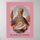 Hier ist eine sitzende St. Ambrose aus Mailand (ca. 340-397) in der Bischofsgarbe verkleidet: Milbe, Weiße Alb, und Karosserie, die dunkelviolett mit einer Rose-Rosa-Futter ist. Sein Crosier, Symbol seines Amtes, lehnt sich an eine Kolumne auf seiner rechten Seite (unsere links). Ein bekannter Prediger und Lehrer, schreibt er. Er hält einen Quill Stift in der rechten Hand und balanciert ein Buch auf sein Knie. Auf dem Fensterbrett hinter ihm sitzt ein Bienenstock, sein Hauptmerkmal. + Sein Attribut und seine Patronagen haben eine interessante Hintergrundgeschichte. Eines Tages schlief der Säugling St. Ambrose in seiner Wiege, als plötzlich ein Schwarm Bienen auf seinem Gesicht herablief. Die Bienen schaden ihm nicht, sondern sie verließ hinter einem Honigtropfen auf den Lippen des Babys. Seine erstaunlichen Christlichen Eltern nahmen die Veranstaltung als Zeichen aus dem Himmel, dass ihre Nachkommen zu einem eloquenten, honigfarbenen Lautsprecher werden würden. Sie lagen nicht falsch: Das Kind wuchs zur Menschheit, studierte Literatur, Recht und Rhetorik, das heißt, fortgeschrittene öffentliche Rede, trat in das öffentliche Leben ein, diente als römischer Gouverneur und wurde schließlich Priester und Bischof von Mailand. Kein Wunder also, dass St. Ambrose durch den Begriff "Der Honey Tongued Doctor" bekannt ist und zum Schutzpatron von Bienen, Bienenstöcken, Imkern, Kerzenmachern und Wachsraffinern oder Meltern wurde! + Übrigens, in der griechischen Mythologie war "Ambrosia" das Essen oder Trinken der Götter, die ihre Unsterblichkeit verliehen. Bienenbrot, Lebensmittel aus Nektar, Pollen und BienenSpeichel, die Arbeitbienen in den Honigwabenzellen von Bienenstöcken zu Larven gefüttert haben, werden manchmal auch als "Ambrosie" bezeichnet. Einige Imker glauben, dass dieses Synonym den Namen des Heiligen fortschreibt. + Fest: 7. Dezember (Jubiläum seiner Ordinierung statt seines Todes) + Image Credit (BEN 001): Antiquitätenbild des Heiligen Ambrose aus Mailand aus einem Oleograph aus dem späten 19. Jahrhundert, der ursprünglich von Benziger, Einsiedeln, Schweiz, aus der privaten Sammlung religiöser Ephemerien des Designers herausgegeben wurde. Ein Oleograph ist eine spezielle Art von Chromolithograph mit glänzender oder polierter Beschichtung, um sein Bild einem Ölgemälde näher zu bringen.
