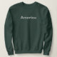 Das ist ein Women's Sweatshirt mit Amerika vorne in Silbertext. Das Sweatshirt ist ein klassisches Crewneck. Sie können das Wort Amerika ändern, indem Sie auf die Schaltfläche Personalisieren klicken.