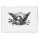 Illustration noire et blanche vintage de l'aigle chauve américain saisissant les flèches, le feuille de chêne, et un bouclier.