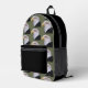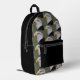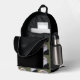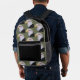 Reisen Sie mit diesem stilvollen und trendigen Rucksack, der das Foto eines schwarzen Adlerkopfes mit weißem Kopf auf grünem Hintergrund zeigt und nur auf der Vorderseite in einem sich wiederholenden Muster gedruckt wird. Die Seiten und der Reißverschluss sind schwarz.