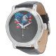 Uhr, Vintage Männeruhr mit schwarzem Lederarmband