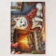 This cozy holiday illustration showcases a fluffy American Eskimo Dog sitting beside a warm fireplace, wrapped in glowing Christmas lights with festive stockings hanging above. The breed’s bright eyes and snowy white coat add winter magic to the scene, making it perfect for American Eskimo lovers and anyone searching for charming seasonal décor on Zazzle. A wonderful Christmas gift idea featuring this beloved spitz breed in a heartwarming holiday setting.