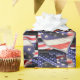 Dieses patriotische Packpapier ist mit einer Collage amerikanischer Flaggen bedeckt. Das festliche Rot, Weiß und Blau wird der Hit jeder patriotischen Feier sein.