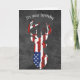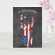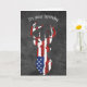 Silhouette mit amerikanischer Fahne auf verwittertem schwarzem Lederhintergrund zum Geburtstag.