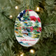 Patriotic "God Bless America" ornament that includes our beautiful flag, pine trees, snow and a log cabin. Design made from Chris Ambrose's original watercolor painting.