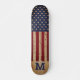 USA American Flag Skateboard in einem bedrückten abgenutzten Grunge Design auf Holz . Dieses Skateboard-Design der USA ist mit US Flagge in Rot-Weiß und Blau ausgestattet und eignet sich hervorragend für militärische, Abschluss Geschenke. Personalisieren Sie dieses amerikanische Fahnenskateboard mit Monogramm Initial. COPYRIGHT © 2020 Judy Burrows, Black Dog Art - Alle Rechte vorbehalten. American Flag Rustic Personalisiert Monogram Skateboard