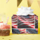 Waving gracefully, the American flag is adorned with musical notes, symbolizing a blend of patriotism and melody
