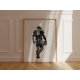 Watercolor-style artwork depicting a male American football player in uniform, captured in a strong and confident stance. dynamic silhouette create a striking design that emphasizes strength and movement. Ideal as a poster for sports enthusiasts or athletic-themed decor.