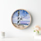 Eine originelle Aquarellmalerei von Anne Ormsby schmückt diese Uhr.