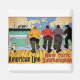 Vintages Plakat für den Linienverkehr der American Line von New York nach Southampton, das den Fischern auf einem Pier zeigt, der ein Linienschiff vorbeisegelt.
