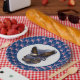 Eine patriotische rot-blaue Flaggengrenze und ein amerikanisches Drehbuch für das Engle Center